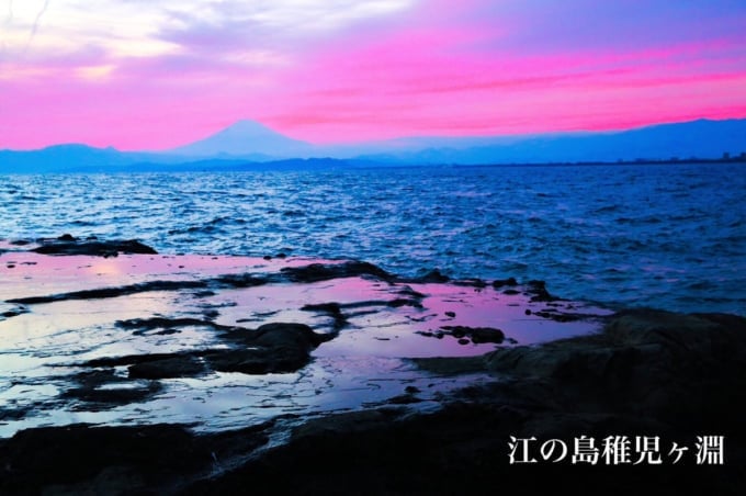 Enoshima is renowned as a tourist destination in Kanagawa. The area around the famous Enoshima Shrine is bustling year-round, and visiting Enoshima often means a shrine visit! However, Chigo Gafuchi is located in the deepest part of Enoshima, completely transforming the usual bustling image of Enoshima. It features an unchanging natural scenery of rock formations, the sea, and Mt. Fuji that creates an overwhelmingly impressive view!