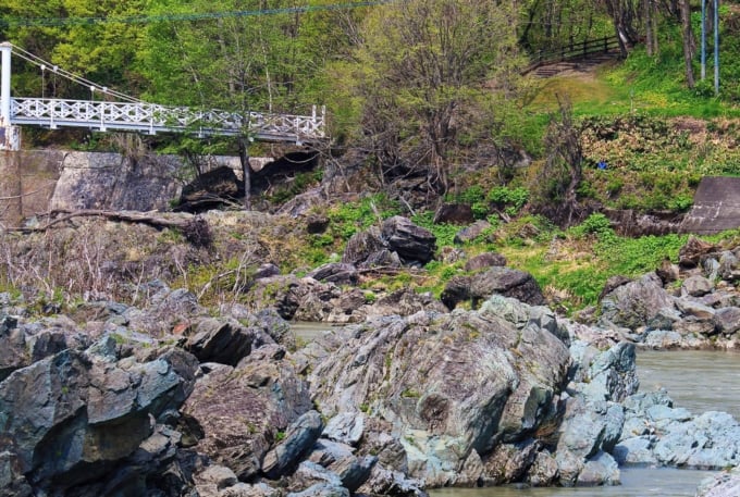 Kamui Kotan features stunning views of the Ishikari River’s rapids framed by lush, mountainous greenery, and it is selected as one of the “Eight Views of Asahikawa.” A wooden bridge called Kamui Ohashi is built over the Ishikari River, allowing passage to the opposite bank.