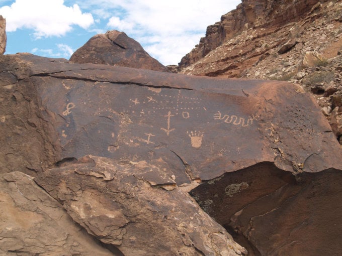 The Little Black Mountain Petroglyph Site is located about 16 kilometers southeast of St. George.