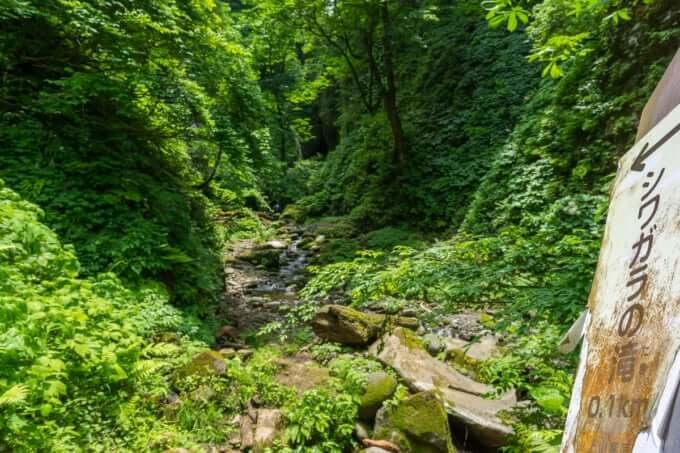 To reach Shiwagara Falls, you must hike up a steep mountain path from the parking lot, and from about 100 meters away, you need to walk through a river along the cliff. Therefore, it is best to wear clothing suitable for mountain hiking, and when walking through the river, bring waterproof shoes such as rubber boots or beach sandals. Also, insect repellent spray is necessary.