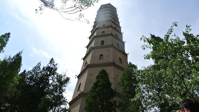 The pagoda is octagonal, consists of 11 stories, and is 64.5 m tall. It is the tallest brick pagoda in the Ningxia Hui Autonomous Region. Inside the pagoda, a very narrow spiral staircase leads upward. The stairway is only wide enough for one person, so when passing other visitors, you must step off to a landing and wait. At the very top, you can enjoy a panoramic view of Yinchuan, where modern skyscrapers and traditional buildings intermingle, revealing the development of the city.