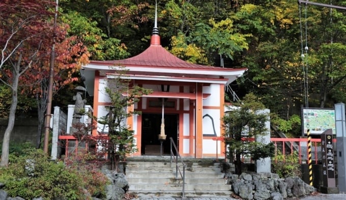 At the far end of the street where Tsukimi Bridge is located in the Jozankei Onsen area, you’ll find Iwato Kannondo, a powerful spiritual spot known for its “33 Kannon Pilgrimage.” This relatively new temple, marked by its vivid red roof, houses a 120-meter-long cave. Inside this cave, 33 statues of Kannon (the Goddess of Mercy) are enshrined, creating a sacred and peaceful atmosphere.