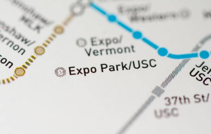 From the heart of downtown Los Angeles, you can take the Metro’s Expo Line from 7th Street Station to the Expo Park/USC Station.