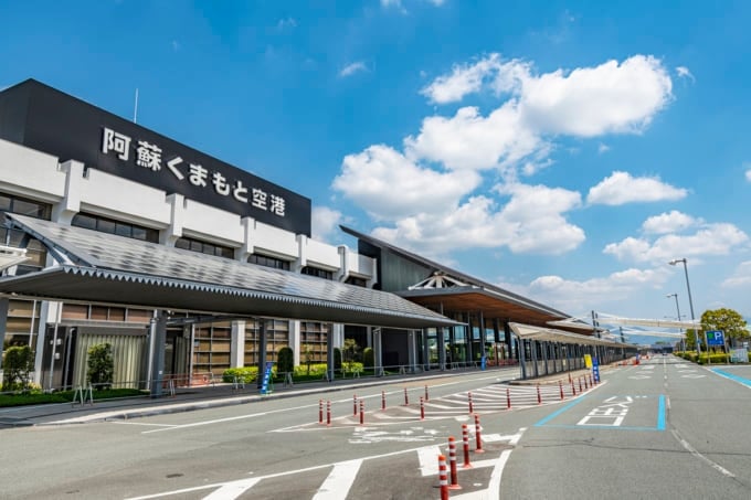 From Kumamoto Airport, the recommended routes are rental car, express bus "Takamori-go," or a combination of local bus or taxi (since some sections of the Minamiaso Railway from Tateno Station remain out of service).