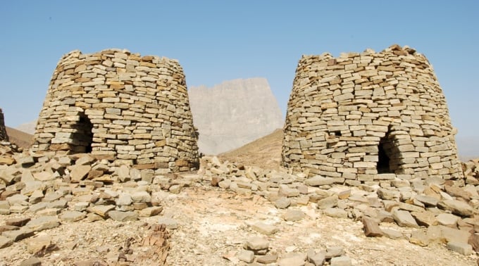 Many of the dwellings were constructed using stacked flat stones. The site is also known for various types of tombs, ranging from simple stone structures to more elaborately processed stone formations. In Bat, five massive towers, each about 20 meters in diameter and 10 meters in height, have been excavated, but their exact purpose remains a mystery.