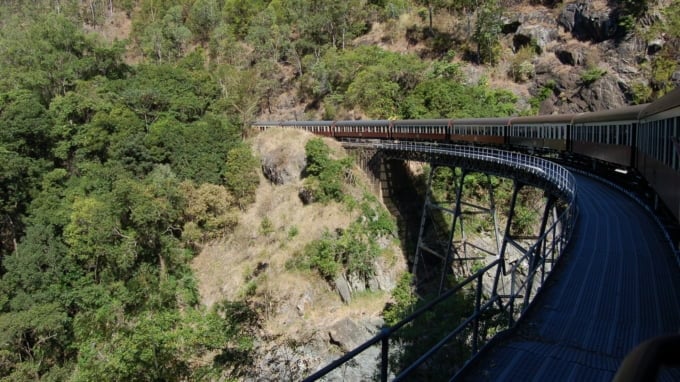 The Kuranda Rainforest, also a UNESCO World Heritage site, can be explored in multiple ways—by the Kuranda Scenic Railway, the Skyrail Rainforest Cableway, or on foot.