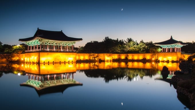 The main area of the Gyeongju Historic Sites is the Wolseong district. Among the many beautifully illuminated sites at dusk and night, the most popular spot is Anapji Pond. This man-made pond, created during the Silla era, was originally called Wolji (Moon Pond). Aristocrats are said to have floated boats and enjoyed leisure time here.