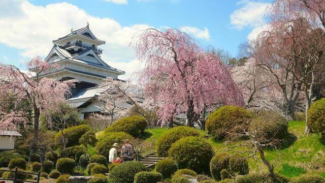 In spring, cherry blossoms bloom around the castle, making it a well-known cherry blossom viewing spot.