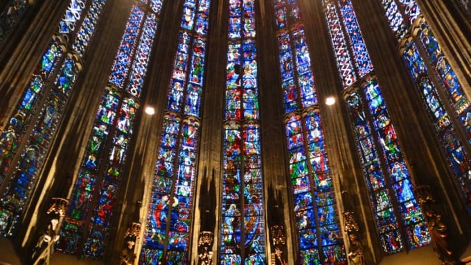 Its name comes from the stunning stained glass—25 meters high and covering more than 1,000 square meters—which will take your breath away. There is no entrance fee, but if you want to take photos, you must pay a separate photography fee, so please inform a nearby staff member.