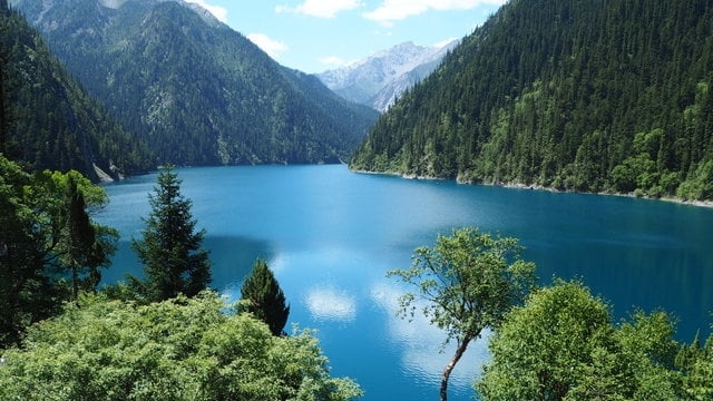 Long Lake is located at the deepest end of Jiuzhaigou and is over 30 kilometers from the main entrance gate. It covers an area of 300,000 square meters, stretches 7.5 kilometers long, and is 600 meters wide. This largest lake in Jiuzhaigou was formed by glacial moraines and has an S-shaped curve typical of glacial terrain.