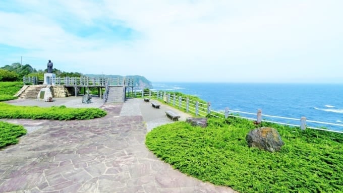About a 20-minute walk from the Katsuura Morning Market, at the tip of Yawata Misaki, lies Yawata Misaki Park, where Katsuura Castle once stood. From the observation deck, the view of the Pacific Ocean is truly breathtaking!