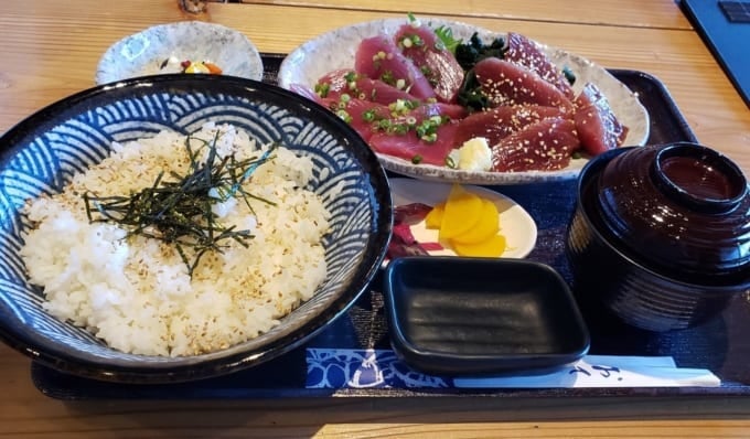 At the Shinsen Hiroba near Katsuura Fishing Port, you can find tuna and bonito rice bowls, grilled seafood, and more! It opens early in the morning and is highly recommended.