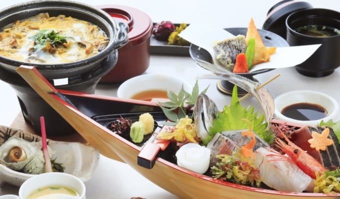 After your bath, enjoy a meal at the restaurant featuring Katsuura’s signature seafood. Dinner options include a mini Kaiseki meal with a boat platter and Anago Yanagawa, specialty Anago Hitsumabushi meal, or a seasonal sashimi boat platter.
