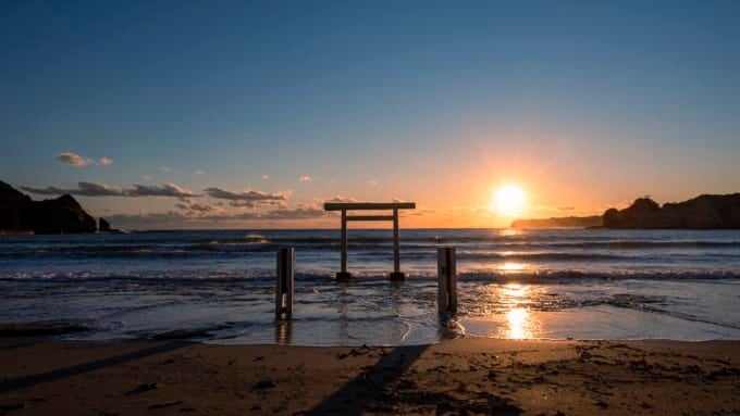 - Stroll along Ubara Beach with its iconic Torii Gate while watching the sunset