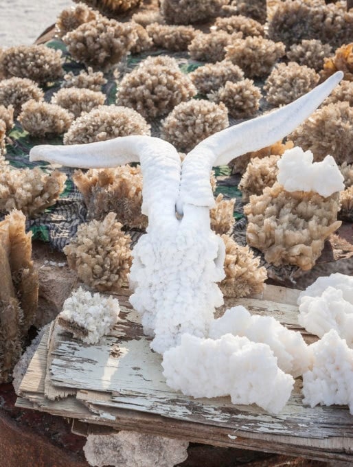 Salt is sold as a souvenir at Lake Assal, but its shape is unusual. It comes in spherical forms ranging from the size of beads to ping pong balls and is sold in plastic bags or PET bottles. Online, it is referred to as "pearl salt." You can also find salt crystals that look like quartz, or mysterious salt objects made by soaking animal bones in the lake. How about bringing back some salt as a souvenir from Djibouti?