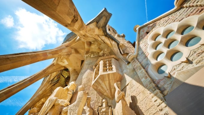 The Nativity Façade is more popular among tourists thanks to its scenic balcony. From here, you can get an up-close look at the central “Tree of Life,” spot Barcelona’s new landmark “Agbar Tower,” and gaze over Gaudí Square below.