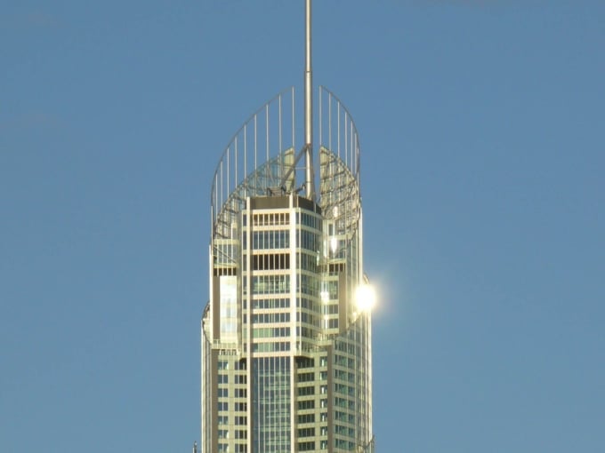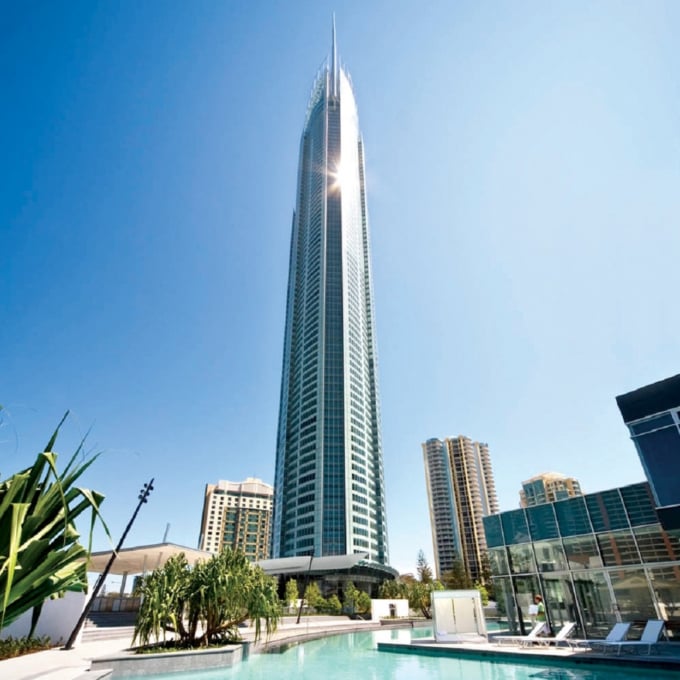 Among the high-rises of the Gold Coast, the most strikingly tall building is “Q1” (short for Queensland Number One). It towers right next to Surfers Paradise Station.