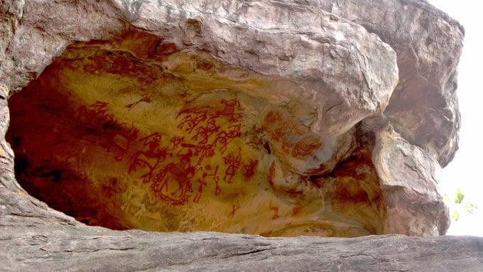Southeast of Bhopal lies another World Heritage Site. The Rock Shelters of Bhimbetka, located at the foot of the southern hills of the central Indian plateau, are archaeological remains of human life spanning from the Paleolithic period (about 100,000 years ago) to the historical era. They are especially known for the rock paintings on cave walls.
