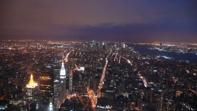 Let’s look down at the night view of New York from the observation deck of the Empire State Building!