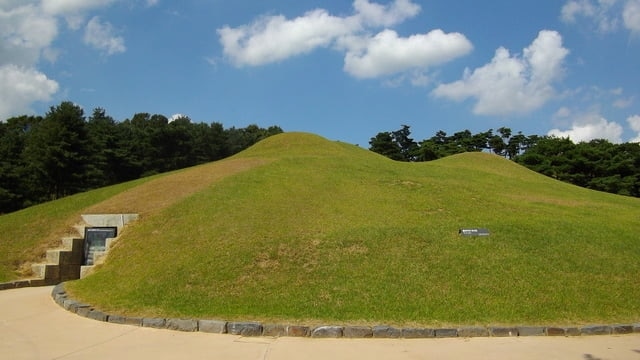 Located about 2 km southeast of Sabi’s former center, Buyeo Naseong was a fortress wall encircling the capital. Today, only traces remain, but historical records indicate that beacon mounds and guard posts once stood along the wall. Inside were palaces, government offices, homes, temples, and markets. About 300 meters of the 8 km-long ruins have been excavated and restored for visitors. Nearby is the royal tomb cluster of Neungsan-ri, also part of the Baekje Historic Areas.