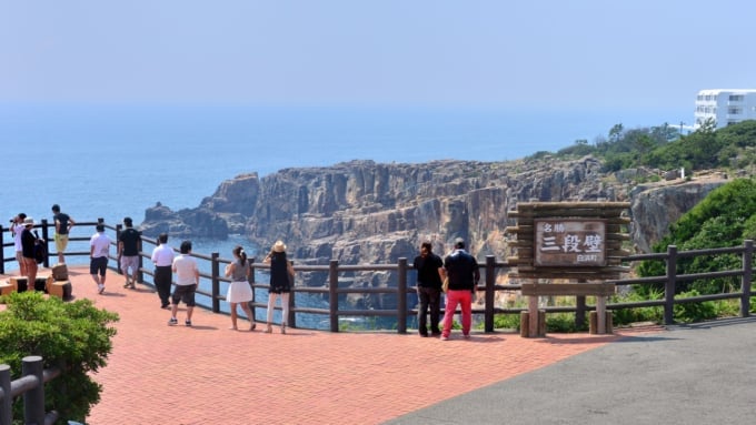 Rising along the southern coastline of Senjojiki, Sandanbeki is a sheer cliff 50 to 60 meters high. Extending about 2 kilometers from north to south, its massive rock wall and striking columnar joints create a truly overwhelming sight. Watching the dynamic Kuroshio Current crash against the rugged rock face leaves a powerful impression of nature’s strength.