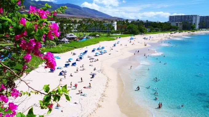 Kaanapali Beach, one of Maui’s most famous beaches, features about 5 km of white sandy shore and crystal-clear waters. Hotels and shopping centers line the beachfront, giving it a true resort atmosphere. Of course, there are plenty of activities such as diving, snorkeling, and kayaking, making it a great destination for the whole family to enjoy together.
