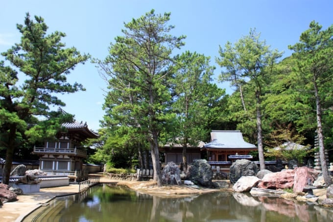 The temple grounds are among the largest in Shikoku. In front of the main hall stands a turtle statue tied to the legend that Kobo Daishi once rode a turtle across the sea while training. It is said that stroking the turtle’s head while making a wish will make that wish come true. When visiting Kongo-fukuji, be sure to give the turtle’s head a pat—you might just see your wish fulfilled.