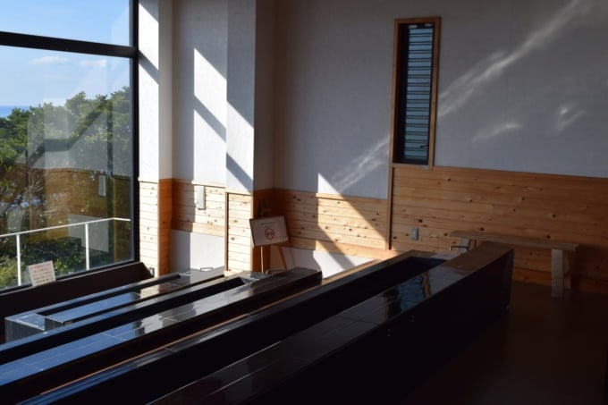 Built in a stepped layout, the foot bath has large windows that overlook Hakusan Cave Gate. After visiting the cave, soaking your feet here while admiring the view is a perfect way to unwind. The bath uses high-quality natural radon hot spring water and is also popular with locals. Parking is available, making it easy to stop by during a driving trip.