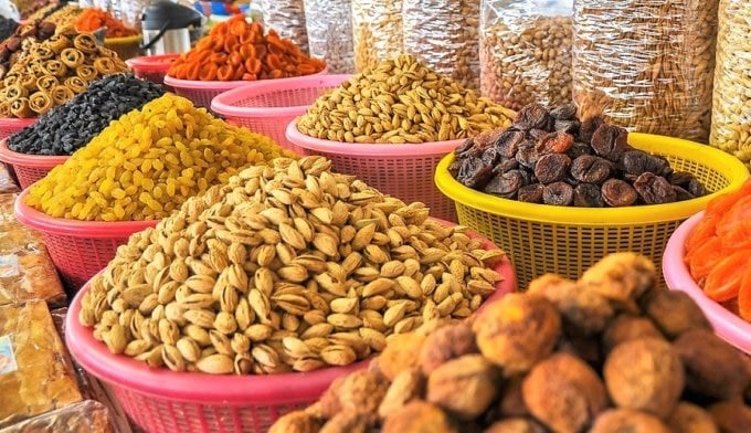 From the classic favorites like dried apricots and raisins, to rare finds such as dried melon, the options are endless. Alongside these fruits, different varieties of nuts are also sold in sets, making them both delicious and nutritious gifts to take home.