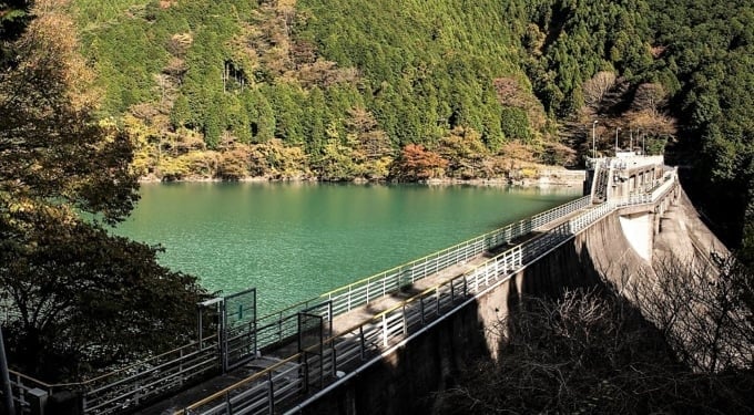 Lake Tenshi (Tenshiko) is an artificial lake created by damming the Sanogawa River. The scenery created by the lake and the surrounding nature is beautiful, and in autumn, the trees turn red, orange, and yellow, offering stunning autumn foliage. Many visitors come every year to enjoy the vibrant colors. The reflection of the trees on the lake surface is as beautiful as a painting.