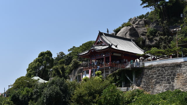 Senkoji Temple is located halfway up Mt. Taipozan. While it is certainly possible to climb up to Senkoji, taking the ropeway up to the summit first, enjoying the view from the top, and then descending towards Senkoji is easier on the body and highly recommended.