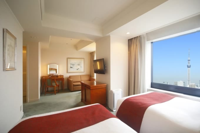 The hotel’s interior is designed with the image of 19th-century Europe, and its 13 types of guest rooms all offer a luxurious, exotic atmosphere. Some rooms feature city views overlooking Tokyo’s night skyline and the Tokyo Skytree.