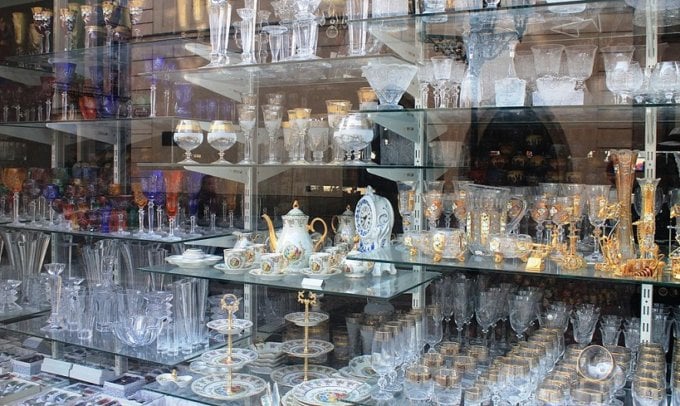 Wine glasses adorned with the delicate and beautiful gravure engravings—characteristic of Bohemian glass—are mesmerizing to look at. However, even in the relatively low-cost Czech Republic, these crystal products can be expensive, so you may need to consider your budget carefully.