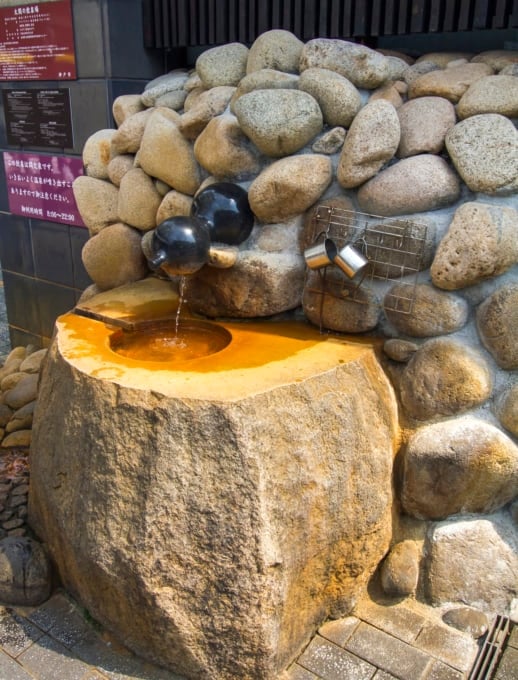 In front of the Kin no Yu building lies the historic Taikō Spring, the birthplace of Arima Onsen. Once dried up in 1966, it miraculously flowed again after the Great Hanshin-Awaji Earthquake. At this newly built drinking fountain, silver hot spring water flows from a gourd-shaped spout. While drinking the spring water is currently prohibited (as of May 2018), Kin no Yu also offers a free footbath—perfect for a quick, relaxing soak during your visit.