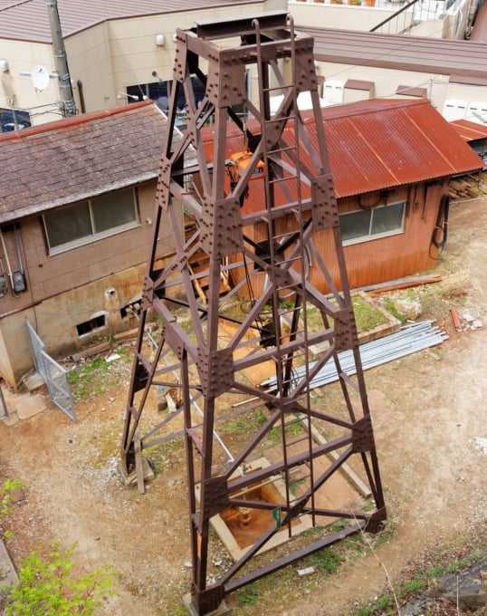On the way back from Tenjin Spring toward the red post box, turn left onto the path, climb the stairs, and turn left again. You’ll soon spot a tower-like structure—the “Ariake Spring Source.” This golden hot spring, exceeding 90°C, is piped directly to local ryokans (Japanese inns).
