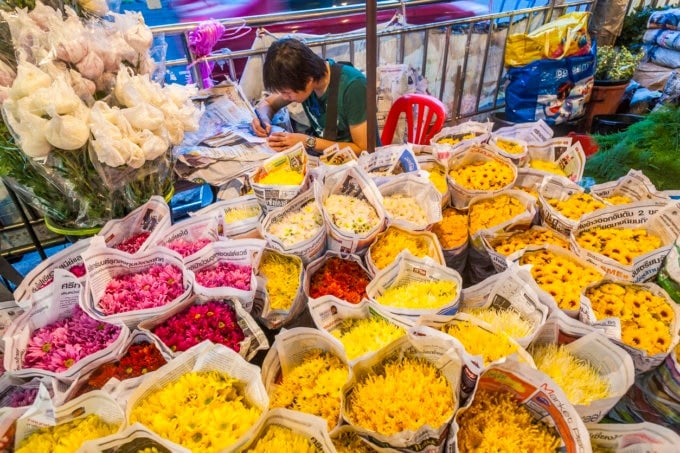 In Thailand, flowers are an essential part of daily life—from temples near the Royal Palace to city streets. The largest flower market in Thailand, where these flowers are traded, is Pak Khlong Market.