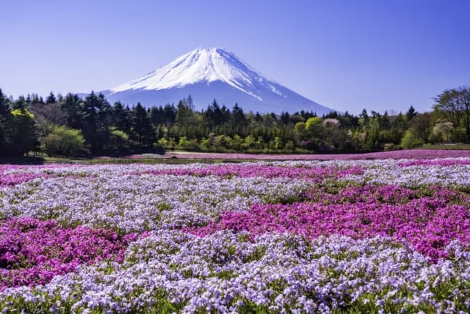 Fuji Motosuko Resort is a lakeside resort area located south along Route 139 from Lake Motosu, one of the Fuji Five Lakes. Its biggest attraction in early summer is the blooming moss phlox, and from mid-April to late May, the “Fuji Shibazakura Festival” is held.
