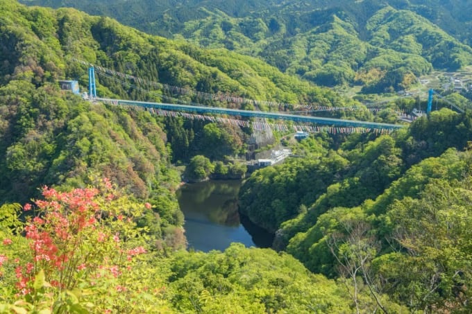 The Ryujin Suspension Bridge, located in Ibaraki Prefecture, is one of the tallest and longest suspension bridges in Japan. The bridge itself is incredibly impressive, but the view from the top in early summer is stunning, allowing you to fully enjoy the lush green scenery.